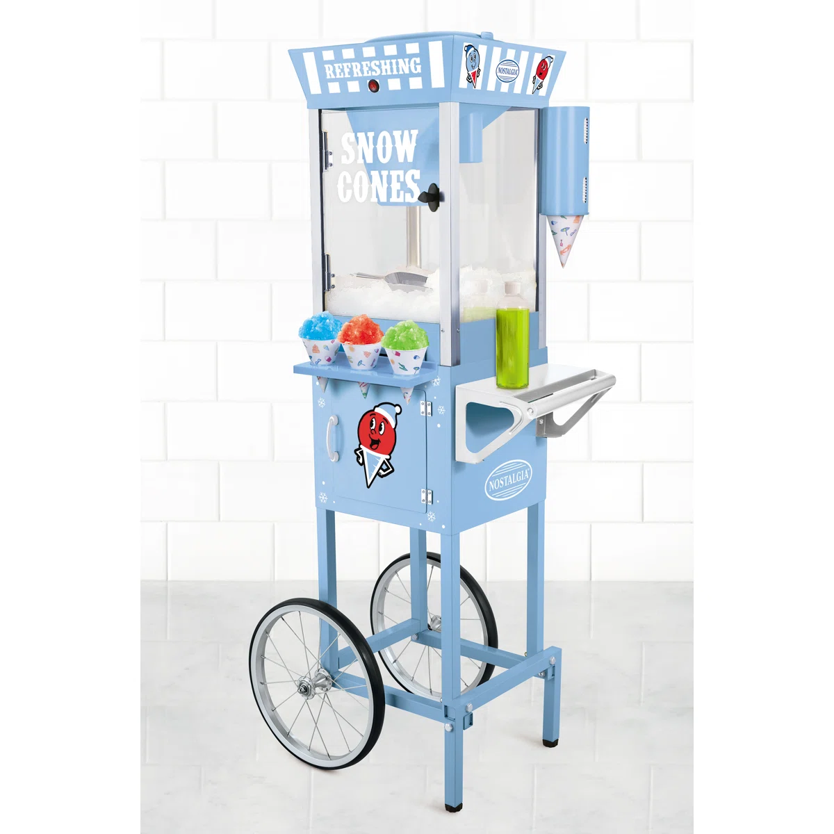 Our snow cone cart stands 54 inches tall and is designed for both style and performance. It quickly shaves standard ice cubes into fluffy, refreshing snow perfect for icy treats. With a built‑in storage compartment and smooth‑rolling wheels, this cart is easy to move, set up, and operate. 🍧 Features - Produces up to 72 snow cones per batch - Includes metal scoop for easy serving - Comes with 4 syrup flavors - Includes paper cups & spoons - Built‑in storage compartment for supplies - Wheels for easy mobility - Clear viewing window so guests can watch the ice being shaved - Classic carnival‑style design that adds visual appeal to any event 🎉 Perfect For - Birthday parties - School events - Graduation parties - Corporate events - Fundraisers - Community gatherings - Outdoor celebrations 📦 What’s Included With Your Rental - Snow cone cart - Metal scoop - 4 syrup flavors - Paper cups - Spoon Straws - Basic instructions for operation (Additional cups/spoons available upon request.) 🧊 What You Provide - Standard ice cubes (bagged ice works great) - Power outlet for operation 💡 Notes - The machine is easy to use and safe for supervised operation - Recommended for indoor or outdoor use - Please return the cart cleaned and free of debris